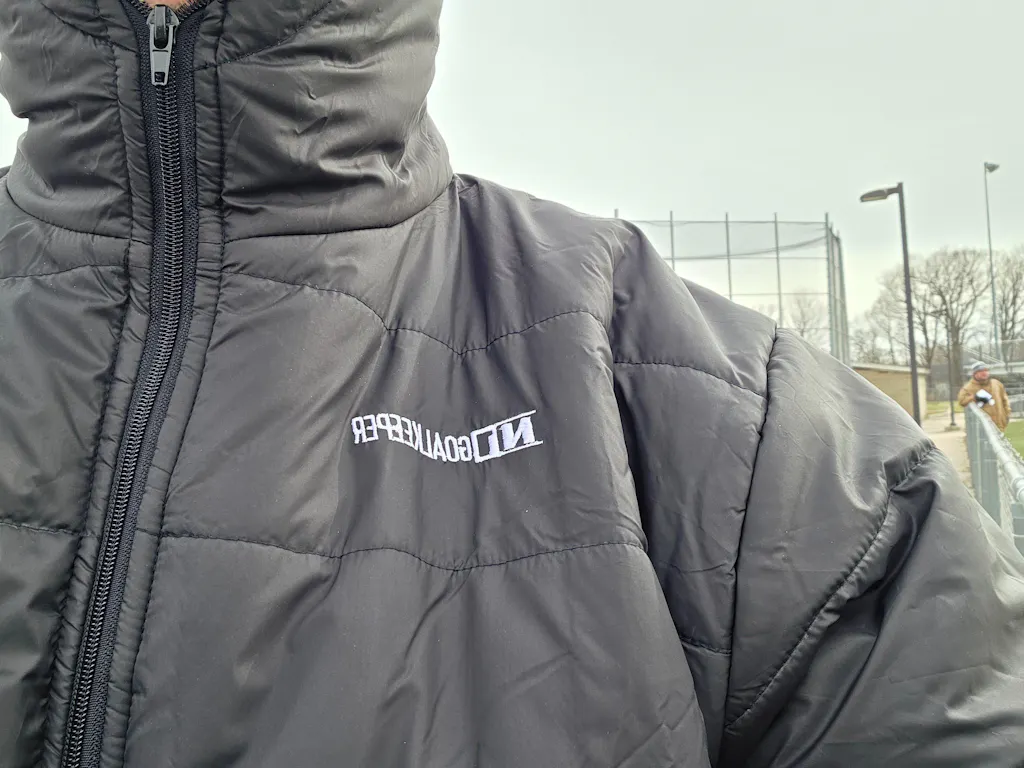 The jacket features a fully insulated hood, a smooth full-zip front, and strategically stitched paneling that helps retain heat while allowing natural movement. Its water-resistant exterior provides added protection against wind, rain, and snow, making it perfect for training sessions, game days, or everyday wear.